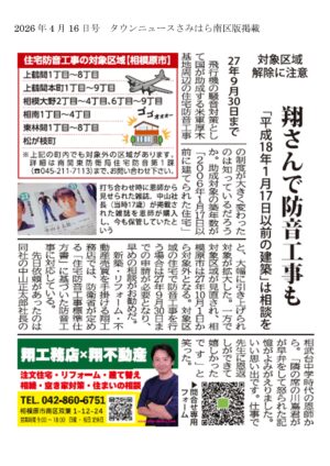 タウンニュースさがみはら南区版2026年4月16日号に掲載されていますのでご覧ください。